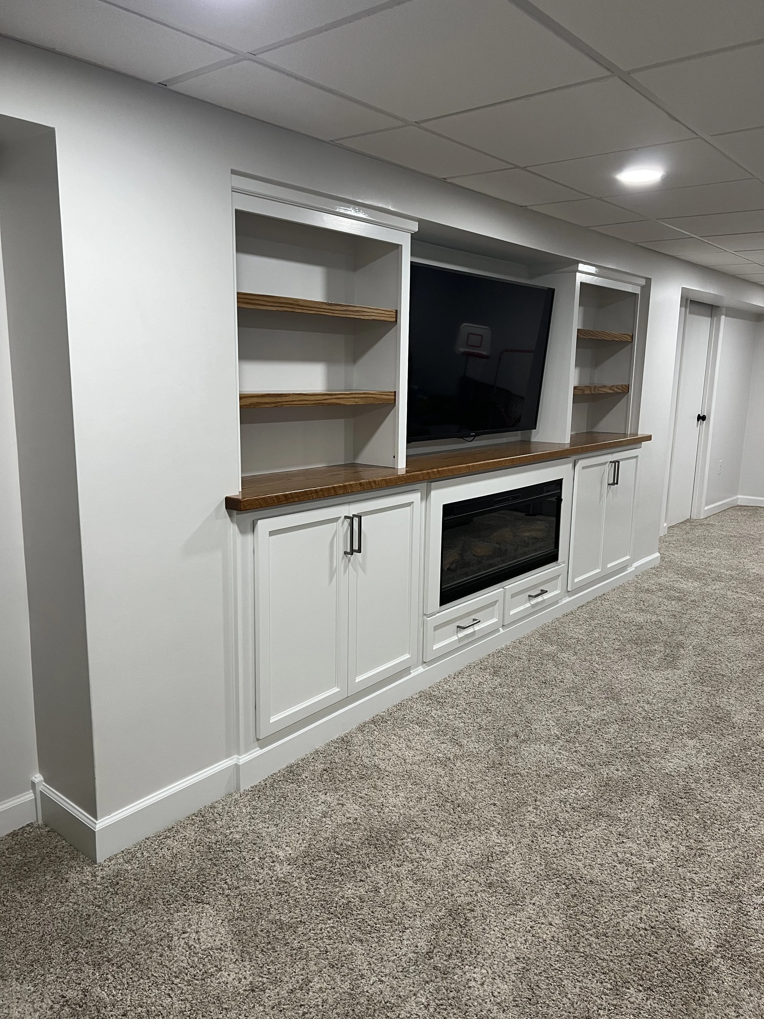 “Bryan did an outstanding job on our built-in fireplace and bookshelves. The quality of his work is top-notch, and he had great design recommendations that really elevated the final look. When unexpected issues came up—like the fireplace we purchased being the wrong size or the uneven floor in our basement—he handled them without missing a beat. He was easy to work with, flexible, and clearly takes pride in doing things the right way. We couldn’t be happier with how it turned out.”
